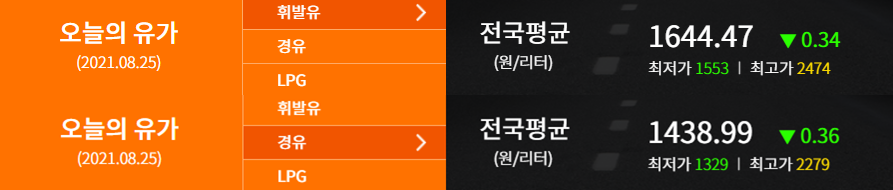 연료가격 기준은 2021.08.25 (출처: 한국석유공사 오피넷)