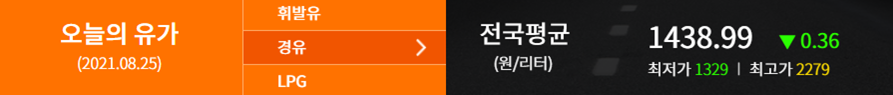 연료가격 기준은 2021.08.25 (출처: 한국석유공사 오피넷)