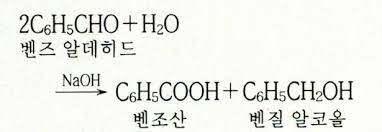 카니자로(cannizzaro)반응: 알데히드에 수산화칼륨이나 수산화나트륨의 희박수용액을 작용시키면 카르복실산과 알코올을 생성