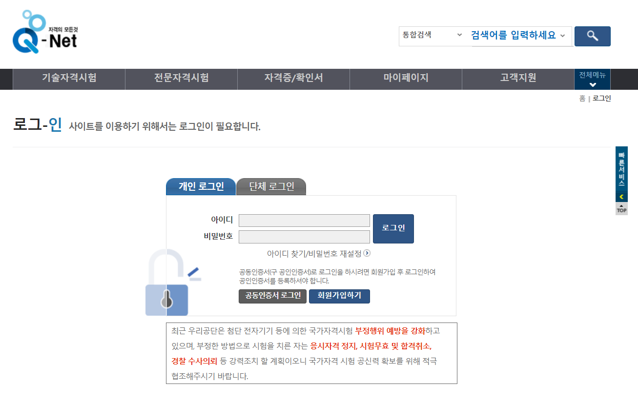 1) 우선 Q-net 홈페이지에 접속합니다.