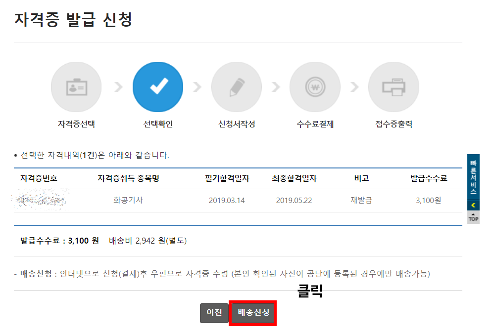 그러면 어느 자격증을 신청할건지 선택하시면 됩니다.