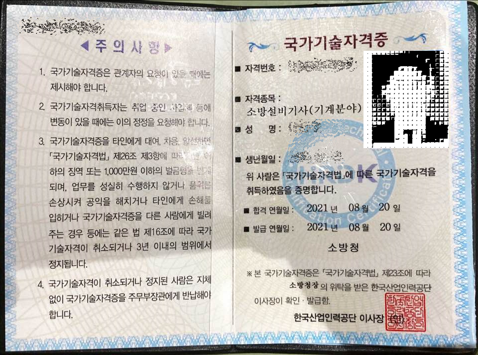 저번에 포스팅했던 소방설비기사(기계분야) 합격후기에 이어, 수첩형 자격증 신청방법을 포스팅해보겠습니다
