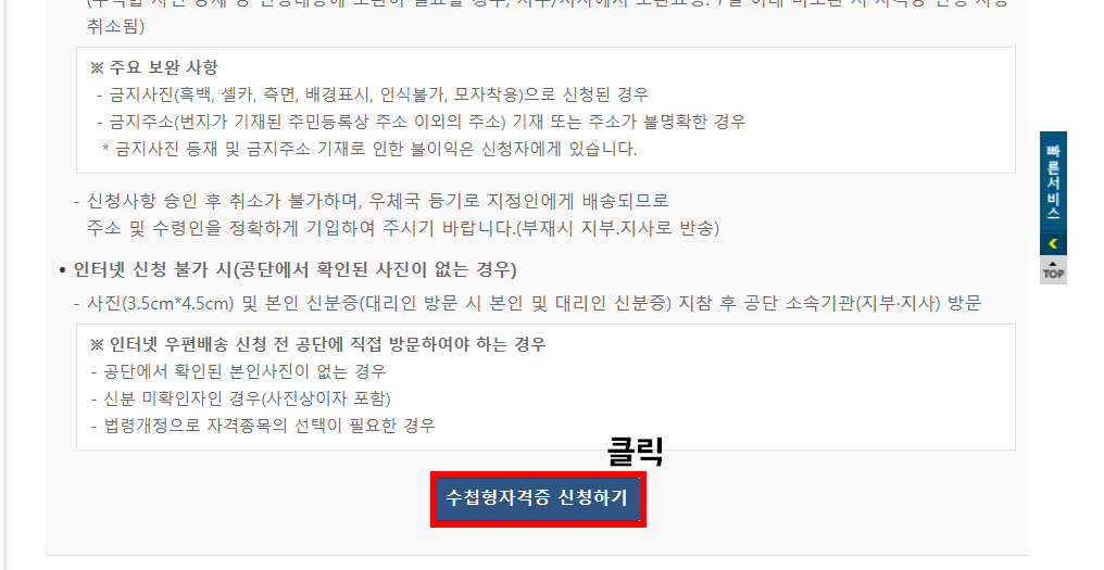 화면 아래쪽에 수첩형자격증 신청하기를 클릭합니다.