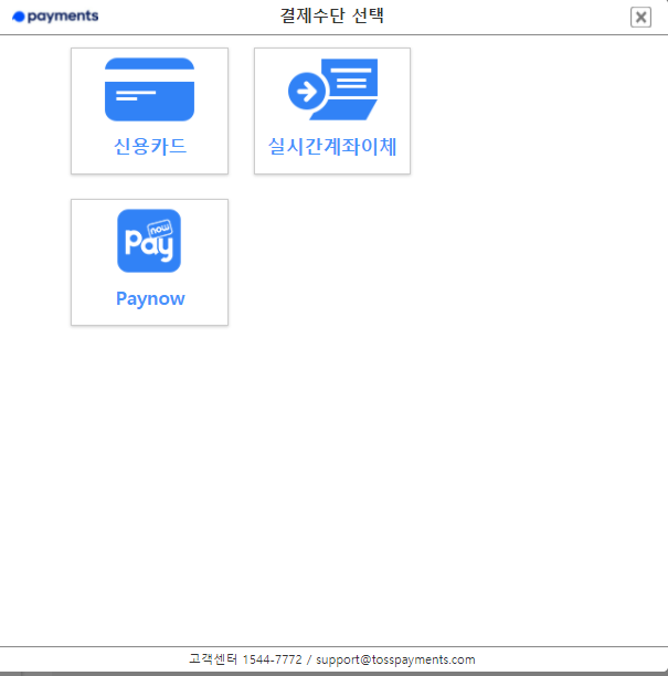 그러면 결제화면에서 본인이 원하는 결제방법으로 선택하여 결제를 진행하면 됩니다.