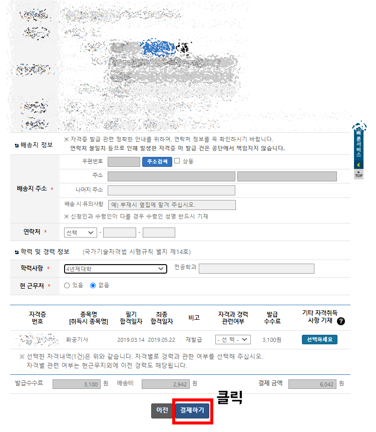 그러면 어느 자격증을 신청할건지 선택하시면 됩니다.