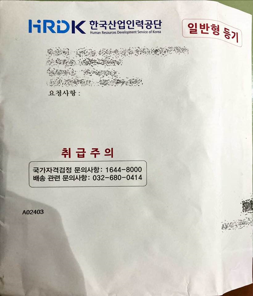자격증을 신청했더니 이런 봉투에 담겨서 오는군요.