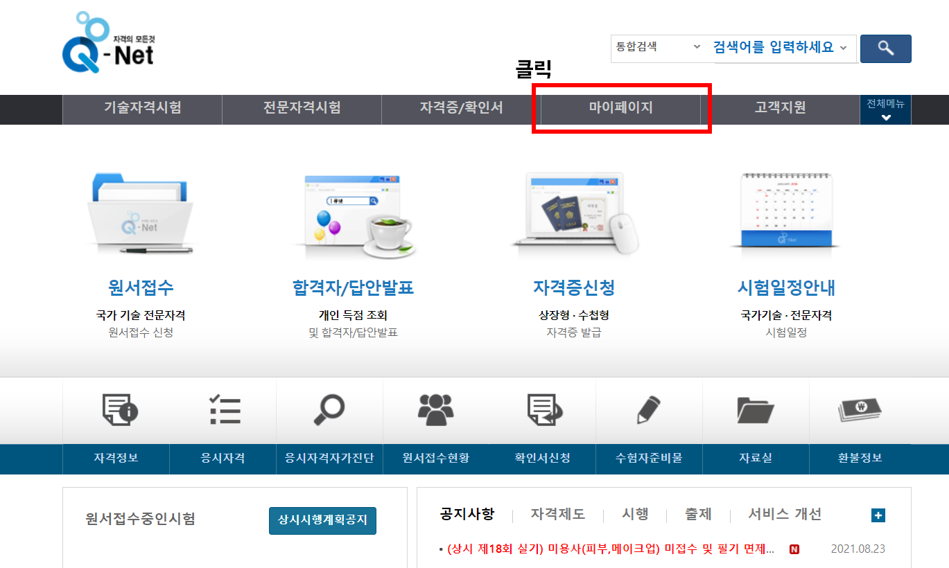 1) 우선 Q-net 홈페이지에 접속합니다.