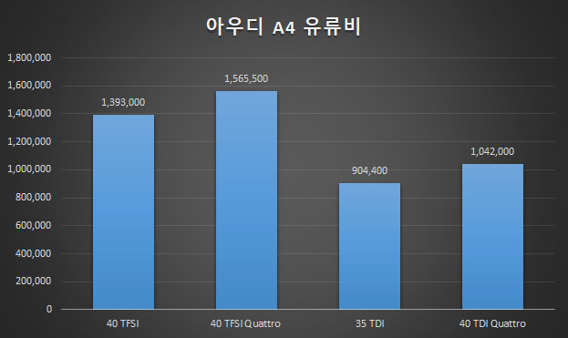 아우디(Audi)의 중형 세단 A4 유류비를 비교해보자.