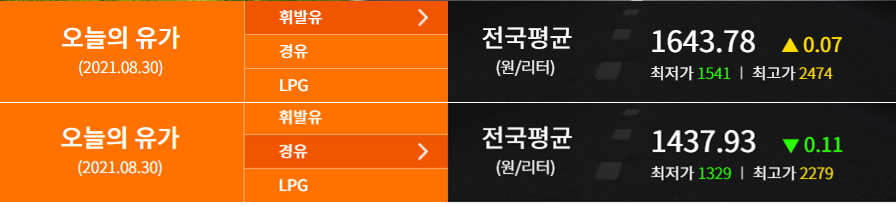 연료가격 기준은 2021.08.30 (출처: 한국석유공사 오피넷)