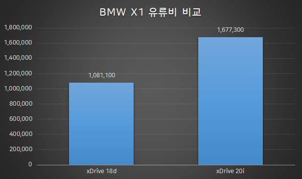 BMW의 준중형 SUV X1 유류비를 비교해보자.