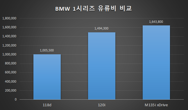 BMW의 준중형 해치백 1시리즈 유류비를 비교해보자.
