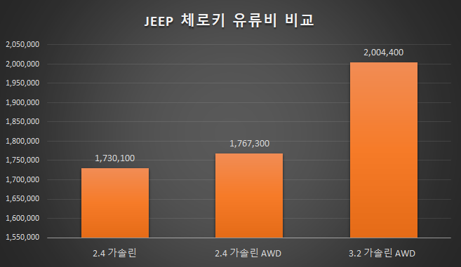 Jeep의 중형 SUV 체로키(Cherokee) 유류비를 비교해보자.