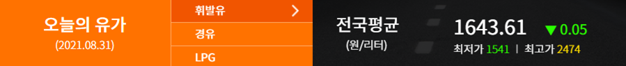 연료가격 기준은 2021.08.31 (출처: 한국석유공사 오피넷)