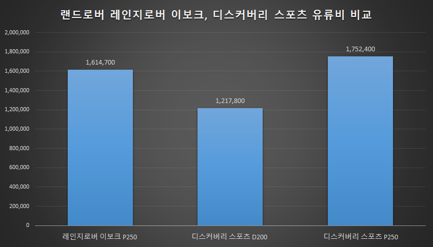 랜드로버의 준중형 모델인 레인지로버 이보크와 디스커버리 스포츠의 유류비를 비교해보았다.