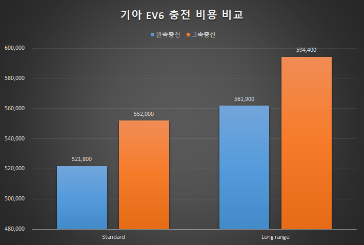 기아자동차 EV6 충전 비용 비교 - 4WD 모델