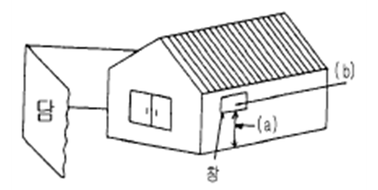 56. 다음 그림은 지정 유기과산화물 저장창고 창의 규정을 나타낸 것이다. 창과 바닥으로부터 거리(a), 창의 면적(b)은 각각 얼마인가? (단, 바닥 면적은 $150m^2$이다.)