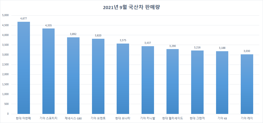 <정리> - 2021년 9월 국내 자동차 판매량 Top 10