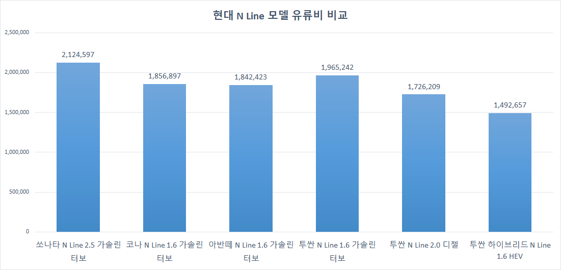 1. 쏘나타 N Line 2.5 가솔린 터보 - 가솔린(휘발유)