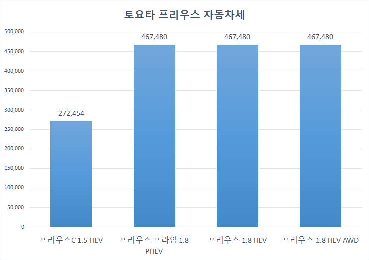 | 프리우스C 1.5 HEV | 프리우스 프라임 1.8 PHEV | 프리우스 1.8 HEV | 프리우스 1.8 HEV AWD | |