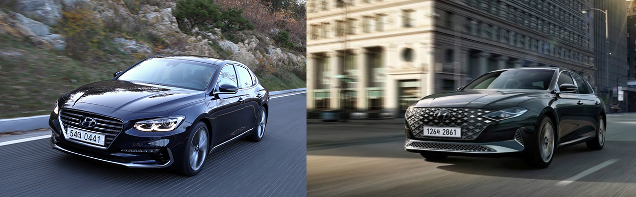 2세대 플랫폼을 적용하고 있는 그랜져 IG의 초기 모델과 페이스리프트 모델이다.