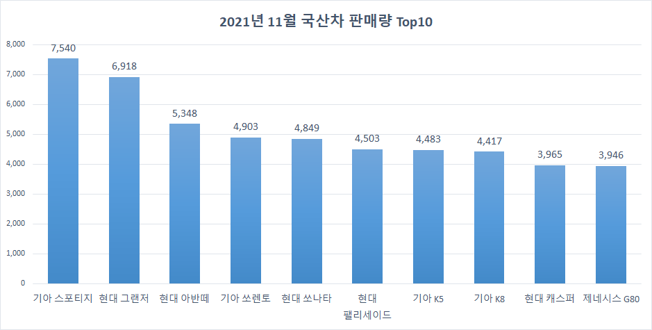 <정리> - 2021년 11월 국내 자동차 판매량 Top 10