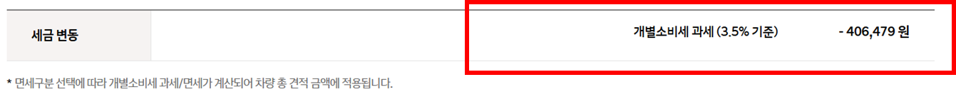 이렇게 개별소비세 변동으로 할인이 적용된 듯한(?) 견적서가 나옵니다.
