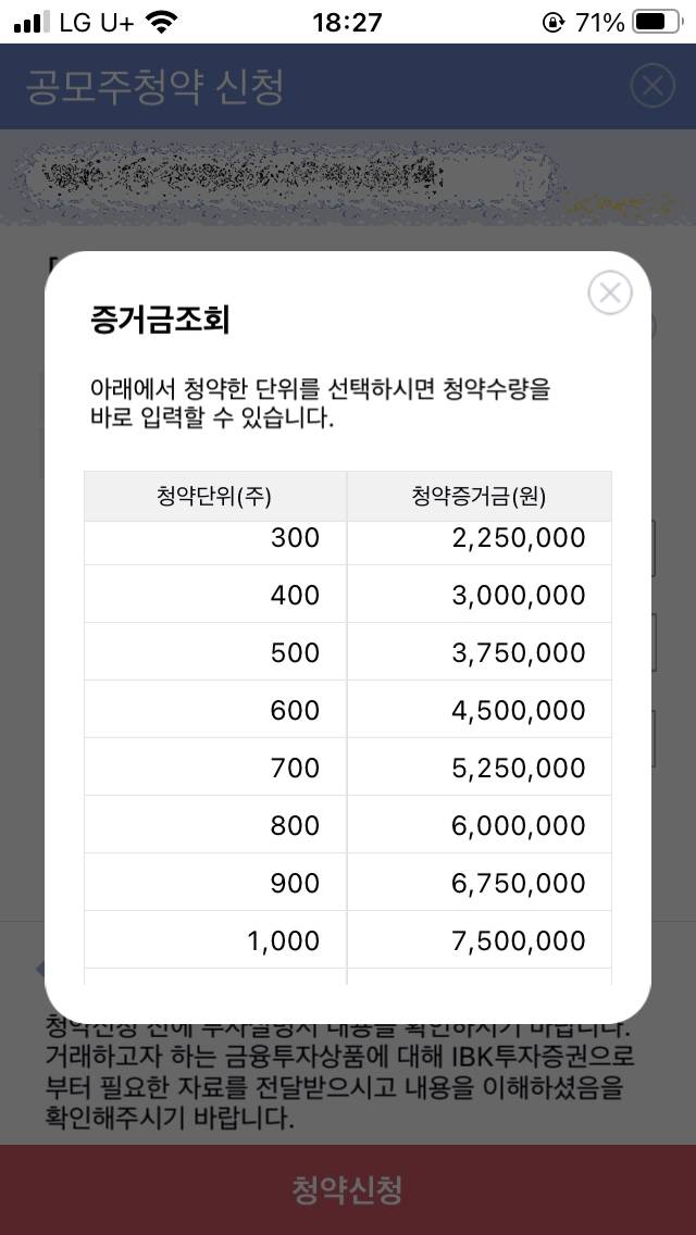 즉, 내가 500개를 청약하려고하면 500개 × 15,000원 = 750만원이지만, 증거금률이 50%이기 때문에 절반인 375만원만 있으면 됩니다.