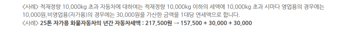 이번에는 화물차를 비롯한, 승합차, 특수차 자동차세를 알아봅시다.