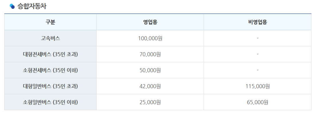 승합차 또한 영업용으로 주로 사용되기에 자동차세가 매우 저렴한 편에 속합니다.