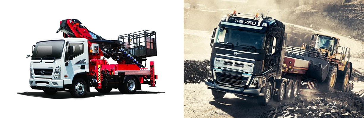 렉카차, 트레일러, 사다리차 등이 있습니다.