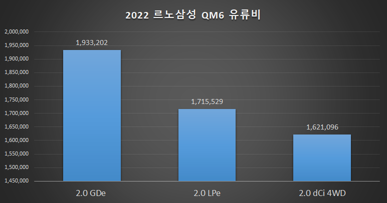 르노삼성 2022 QM6 유류비 비교 - 가솔린, LPG, 디젤