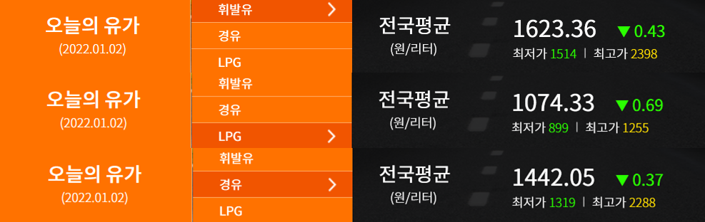 연료가격 기준은 2022.01.02 (출처: 한국석유공사 오피넷)