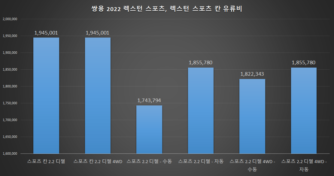 쌍용 2022 렉스턴 스포츠, 스포츠 칸 유류비 비교 - 디젤