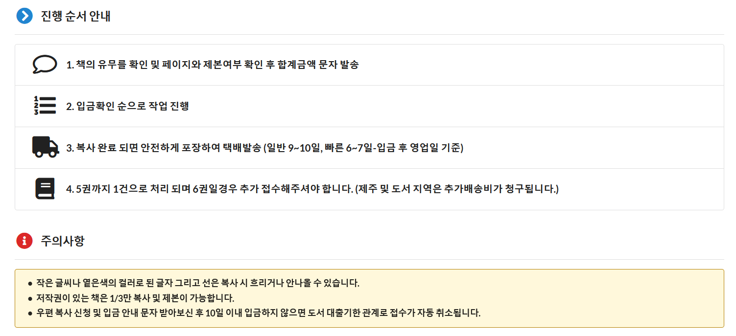 절판된 책은 구하기가 힘든데요, 그래서 국회도서관에서 해당 책을 복사해서 필요한 사람에게 복사한 걸 보내주는 것입니다.