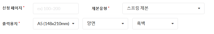 3. 본인이 원하는 제본유형, 출력용지를 선택합니다.