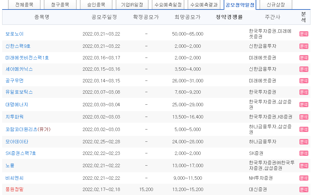 어떤 증권사는 청약 바로 전날(위 상황에서는 3/1)까지 해당 증권사의 계좌를 개설해야 공모주 청약이 가능합니다. 반면 다른 증권사는 청약날짜에 계좌를 개설해도 청약이 가능한 곳이 있습니다.