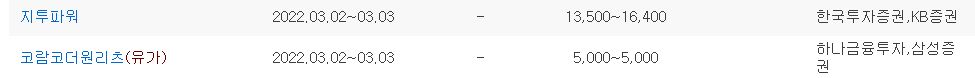 어떤 증권사는 청약 바로 전날(위 상황에서는 3/1)까지 해당 증권사의 계좌를 개설해야 공모주 청약이 가능합니다. 반면 다른 증권사는 청약날짜에 계좌를 개설해도 청약이 가능한 곳이 있습니다.