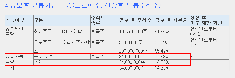 유통가능물량은 말 그대로 공모주가 상장된 후 거래될 주식의 양입니다. 이거는 많아야 좋을까요? 적어야 좋을까요?