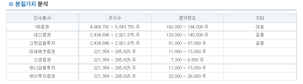 그래서 공모주를 1주라도 더 받기 위해서는 청약 마감 1~2시간 전에 주간사 별로 경쟁률을 확인하면서 경쟁률이 가능한 적은 주간사로 청약하시는 게 좋습니다.