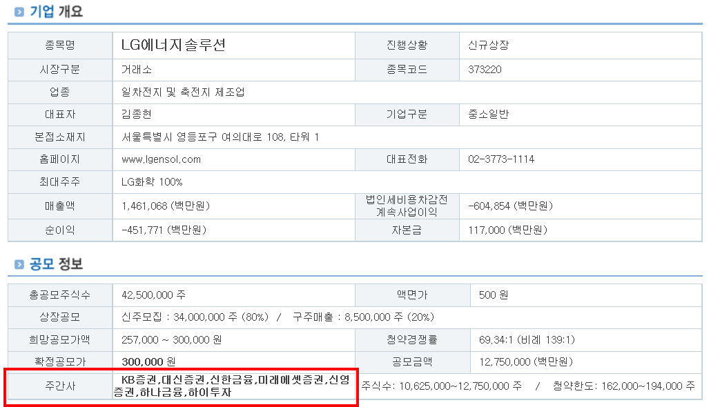 원래는 보통 1~2군데 정도만 주간사로 참여하는데, 그만큼 LG에너지솔루션이 괜찮은 공모주였다는 걸 나타내기도 합니다.