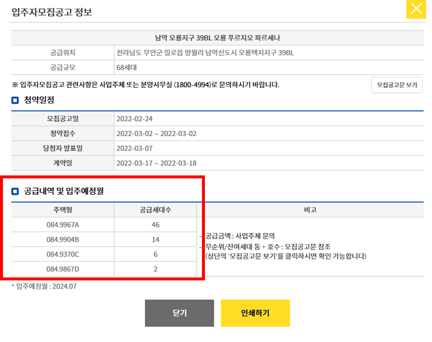 클릭해보면 잔여세대가 얼마나 되는지 확인해볼 수 있습니다.