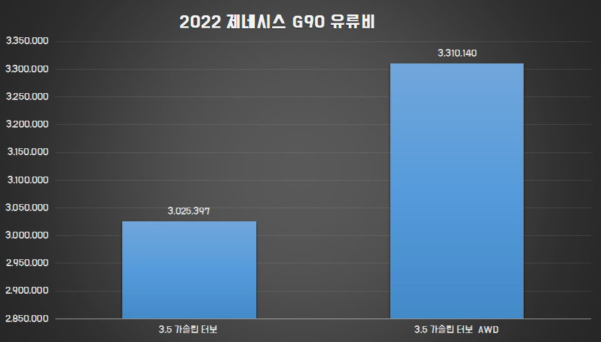 제네시스 2022 G90 유류비 비교 - 가솔린