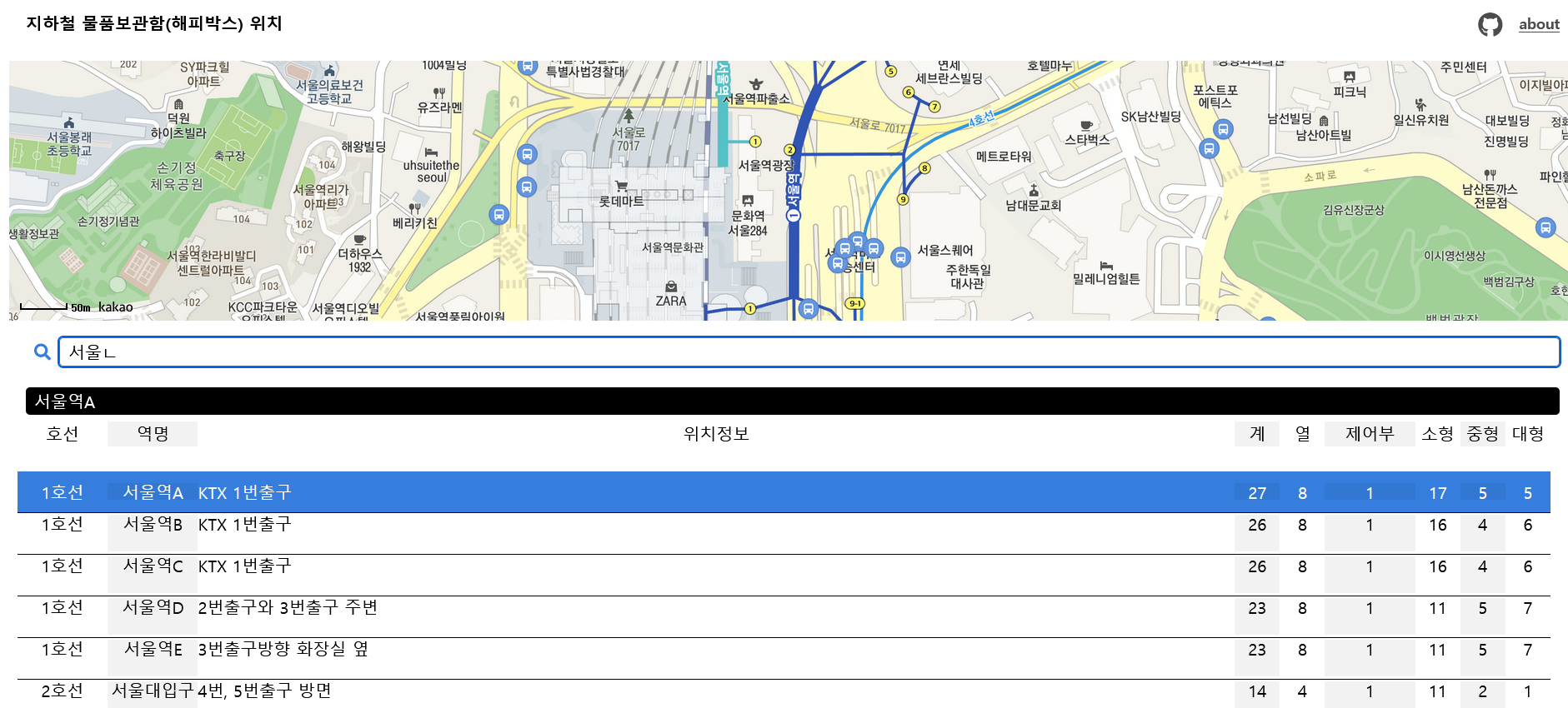 지하철역 물품보관함은 위 사이트에서 역 이름으로 검색하시면 쉽게 찾을 수 있습니다.