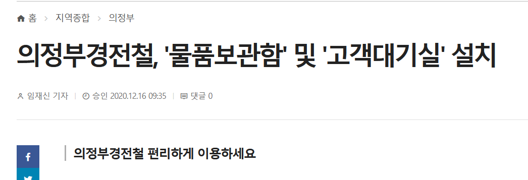 기사에도 의정부경전철에 물품보관함을 설치했다는 기사도 보았습니다. 근데 시간이 1년 넘게 지나서 혹시 미운영하지는 않을까 직접 고객센터에 전화를 해보았습니다.