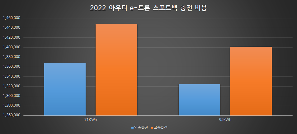 아우디(Audi) 2022 e-트론 스포트팩 충전 비용 비교