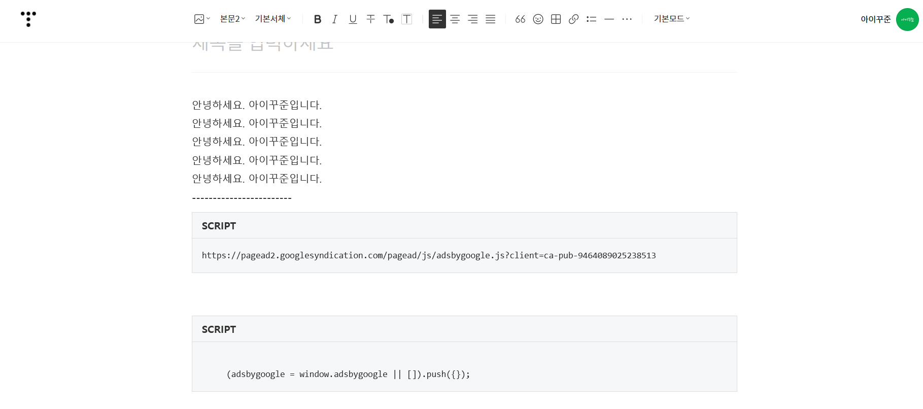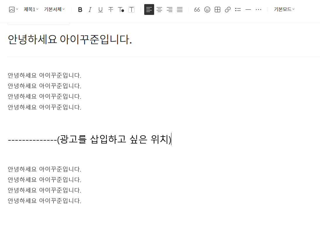 이렇게 하면 글 중간중간에도 광고를 내가 원하는 위치에 삽입할 수 있습니다.