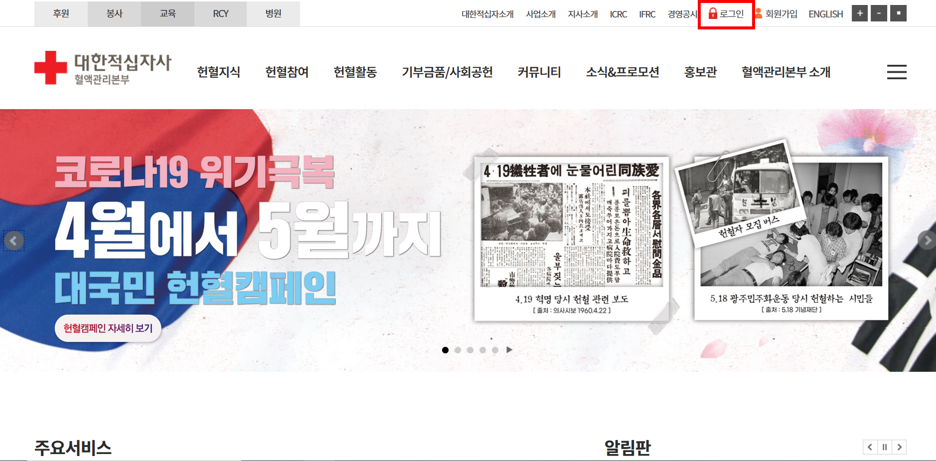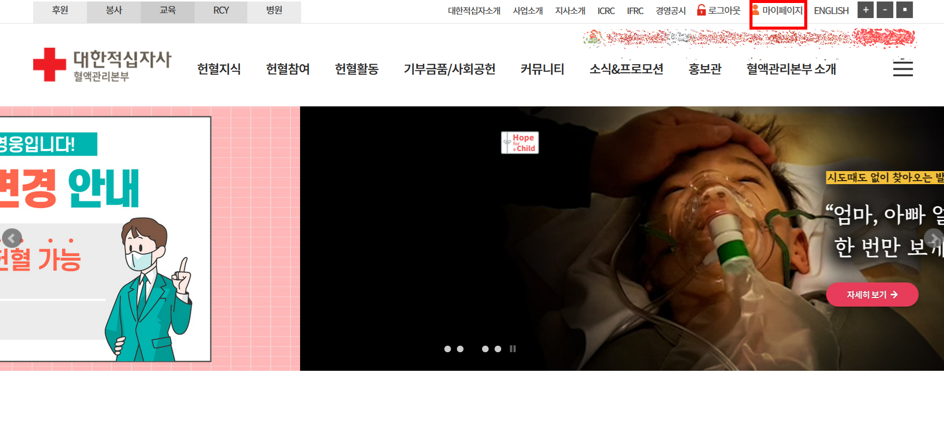 1. 우선 대한적십자사 혈액관리본부에 접속합니다.