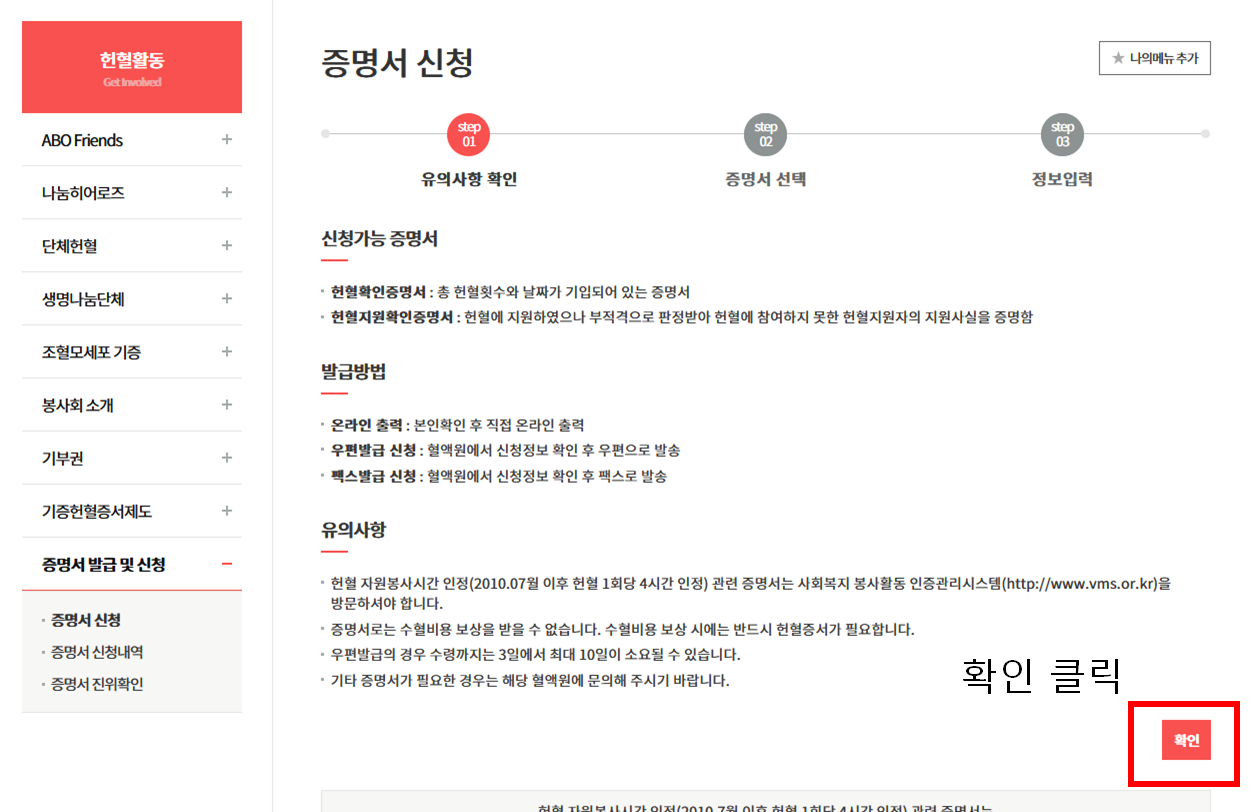 헌혈확인증명서 발급받는 법
