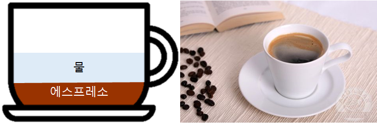 에스프레소에 뜨거운 물을 희석시켜 만든 커피