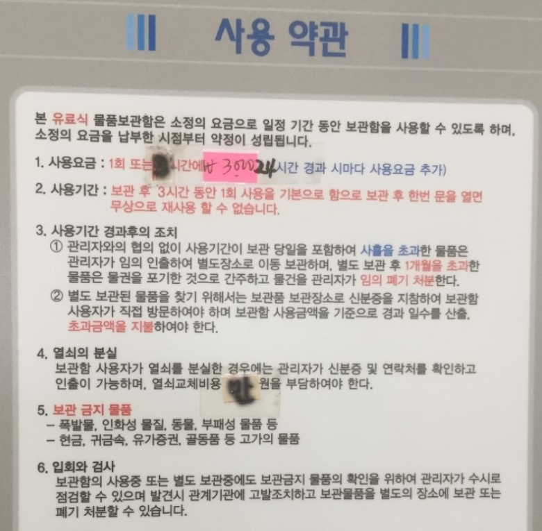 물품보관함이 있나 사전에 검색해보니 정보가 잘 없어서 제가 직접 정보를 정리하고자 합니다.